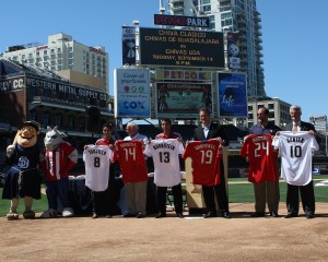 Al final de la conferencia de prensa, los representantes de los Padres recibieron unas camisetas personalizadas de Chivas USA, al igual que el Alcalde de San Diego, mientras que Hunter, Trujillo y Bornstein también recibieron camisetas por parte de los Padres de San Diego.
