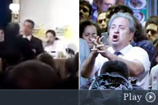 Fíjense en el video (espero que no lo quiten), no sólo de cómo sacan al pobre hombre del recinto, el Ritz, por cierto, sin dejarle expresarse libremente, además el muy pendejo del Iglesias le responde cuando ya el hombre no está, no tuvo cojones de pedirle al guardia de seguridad que dejara tranquilo al hombre hacerle la pregunta. Ahí vemos lo que es este tipejo, otro mierda, pendejo, cobarde. Si tiene lo que hay que tener debiera invitar ahí mismo, en su mesa, en el Ritz, a ese padre español cuya hija fue reprimida en Venezuela, y no justificar, como ha hecho tan cínicamente, la represión y los muertos en Venezuela, después que el hombre se ha ido. Tan cobarde como los Castro…