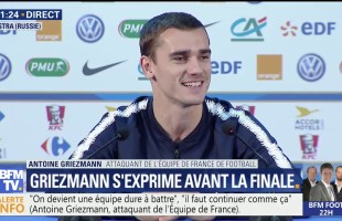 Antoine Griezmann s’exprime en conférence de presse depuis Istra en Russie, à deux jours de la finale de la Coupe du monde entre la France et la Croatie.