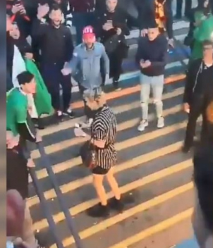Ahí tienen a algunos buenos inmigrantes abanderados con la bandera argelina maltratando a un transgénero, lo nunca antes visto en París, este barrio.