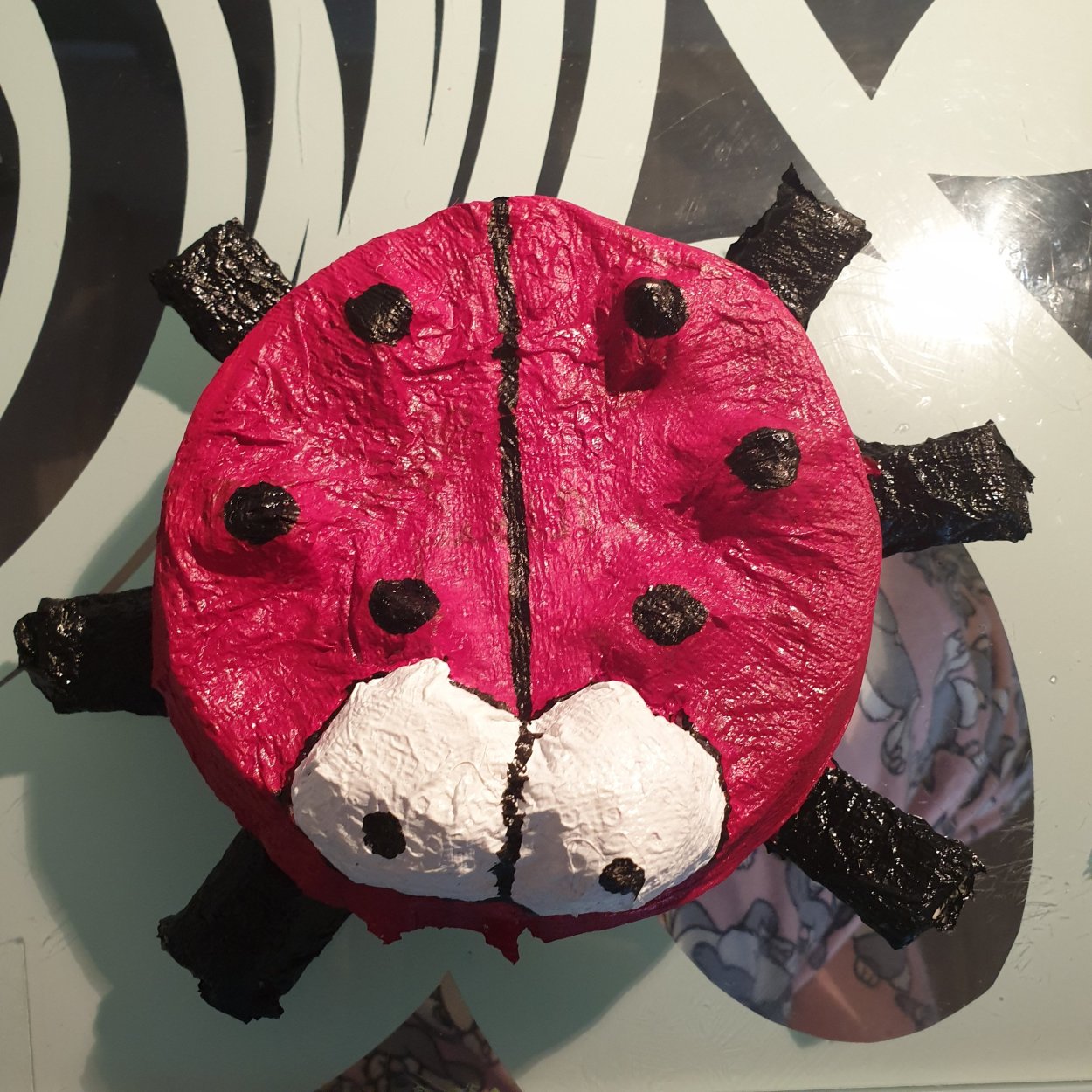 Esta vez hice una mariquita a partir de una caja de quesitos