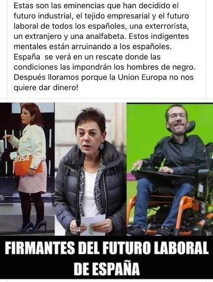 Fotocomposición con comentario de los tres personajes firmantes de la supresión íntegra de la Reforma Laboral. AUTOR: Desconocido.