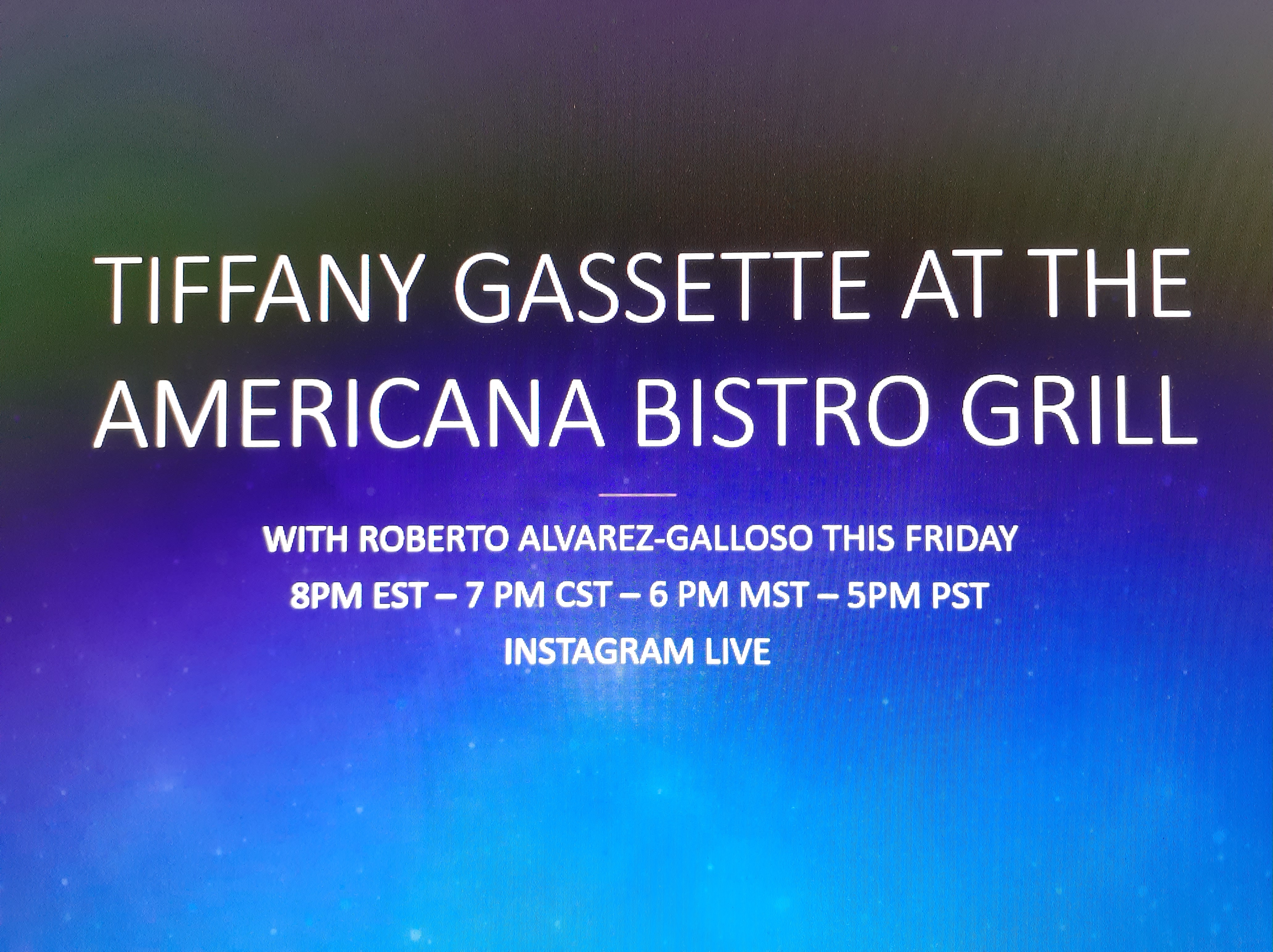 TIFFANY GASSETTE AT THE AMERICANA BISTRO GRILL THIS FRIDAY