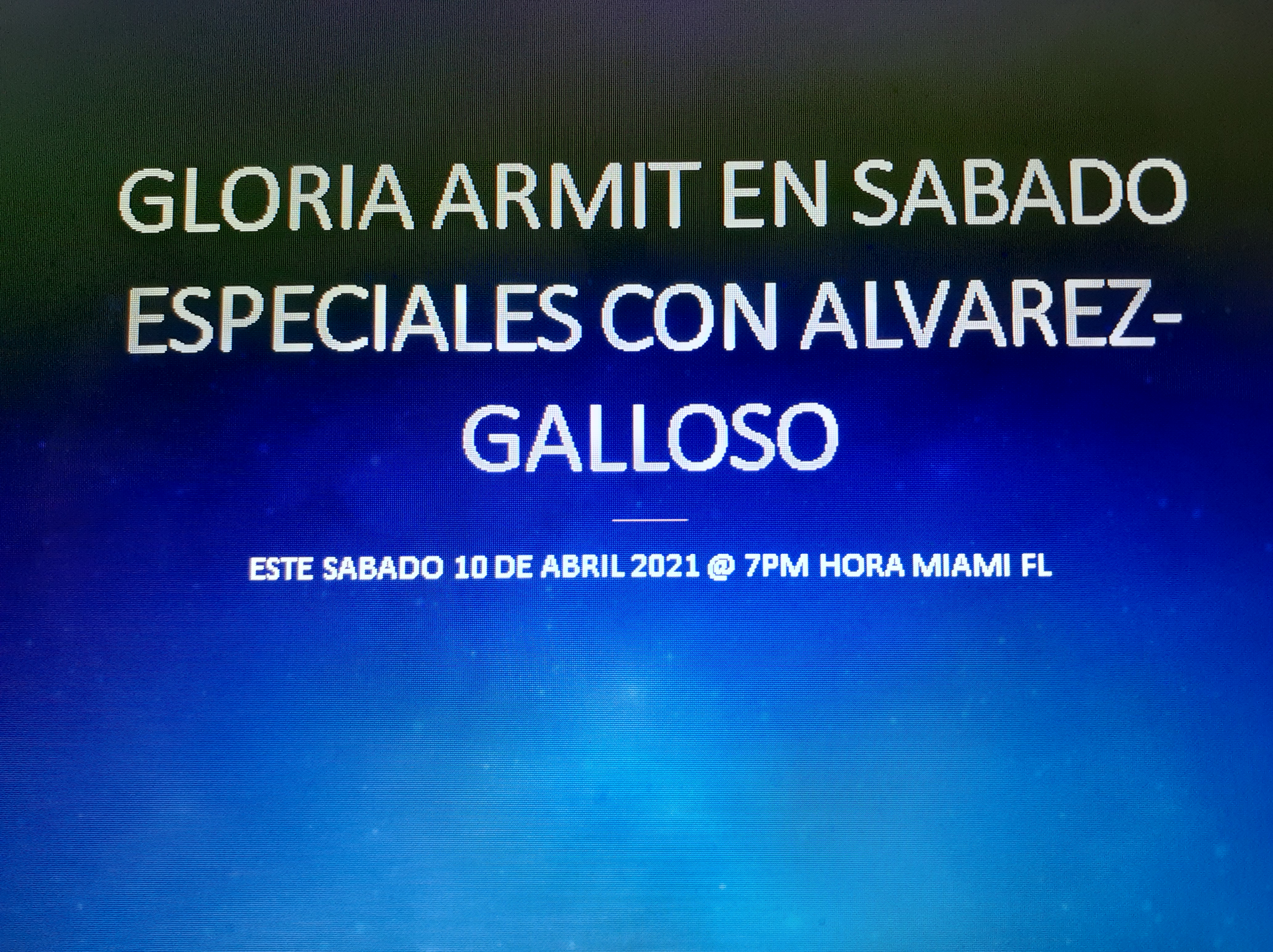 GLORIA ARMIT EN SABADO ESPECIALES CON ALVAREZ-GALLOSO 10 DE ABRIL @7PM HORA MIAMI MEDIANTE INSTAGRAM LIVE