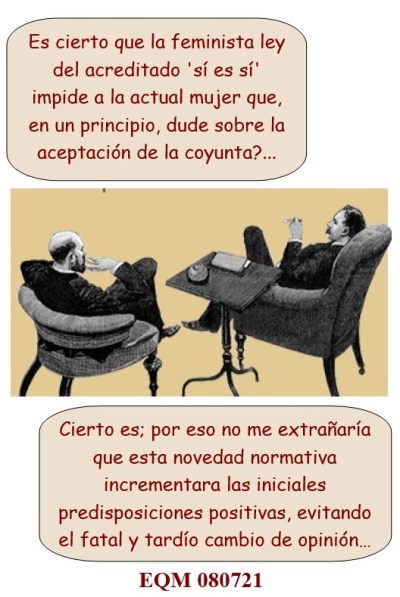Al final este no queda estipulado bajo una fórmula rígida (como es lógico tratándose de relaciones sexuales en el mundo real), sino que se deducirá del contexto y de los actos de los intervinientes, lo cual sigue dejando en manos del juez…