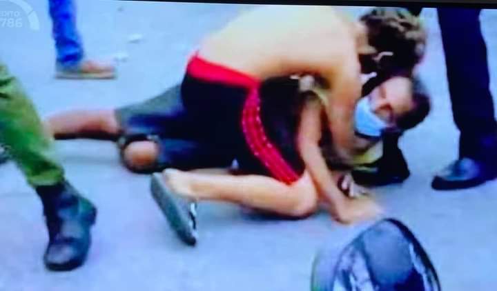 HIJO PROTEGE PADRE DE REPRESION POLICIAL EN CUBA (FOTOGRAFO ANONIMO FOTO TOMADA HACE UNA HORA EN CUBA)