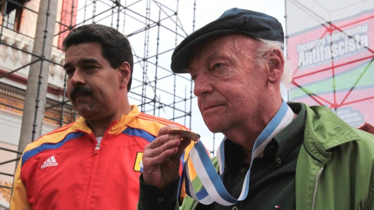 El escritor Eduardo Galeano, junto al tirano Nicolás Maduro. Fotografía de archivo (2013). Reuters