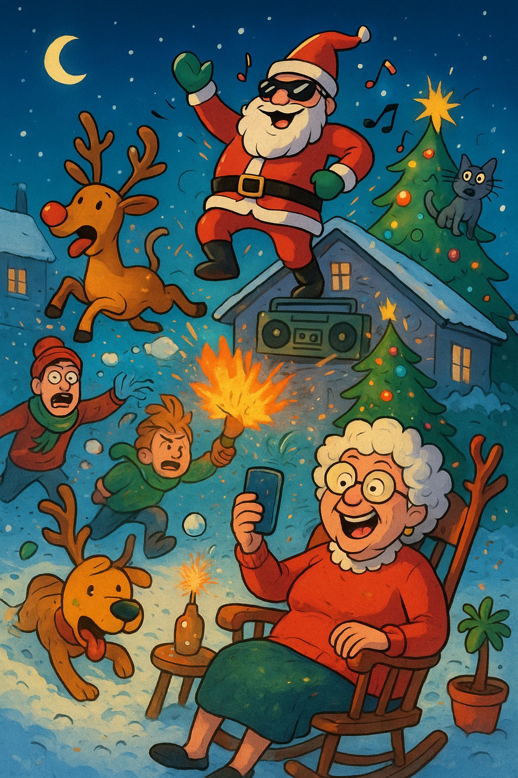 Todo empezó en el bonito y nevado pueblo Villa Quetejodan cuando Don Paco, el vecino obsesionado con las luces navideñas, decidió que su casa debía ser visible desde la Luna. Colocó 4.238 luces, un reno inflable de tres metros y un Papá Noel que bailaba reggaetón. Todo en sincronía con música a […]